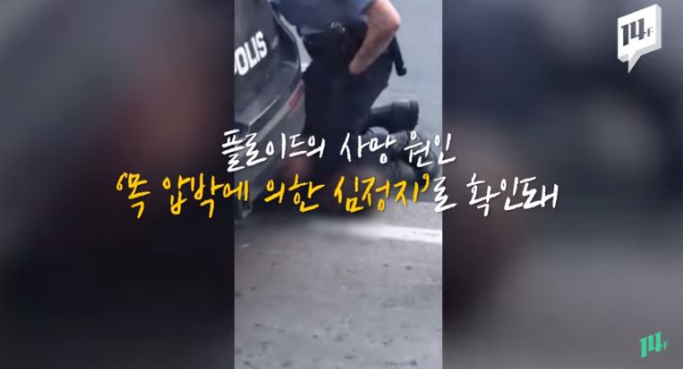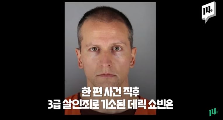 경찰의 신분에도 불구하고 흑인에 대한 인종차별적인 감정을 그대로 행사하며 8분이 넘게 한 사람의 목을 길거리에서 눌러서 사망에 이르게 한 그 장본인, 데릭쇼빈입니다.