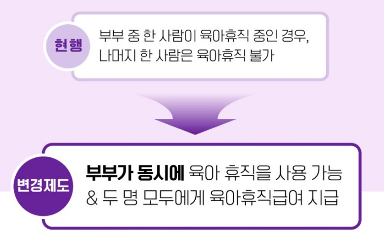 이전 보다 달라진 점이 바로 부부동시 육아휴직이 가능하다는 점입니다.