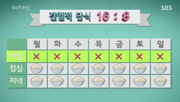 일반적으로 간헐적 단식이라고 하면 사람들은 보통 16:8의 법칙으로 생각을 합니다. 즉, 8시간동안 음식물을 섭취하고 16시간동안 아무것도 먹지 않아 위와 내장등을 쉬게 해주는 겁니다.