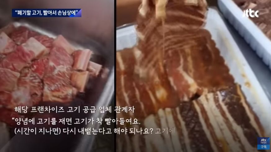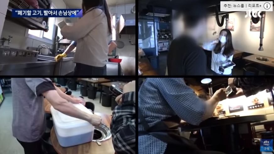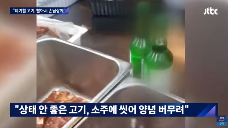 며칠전 JTBC에서는 송추가마골의 지점 관계자가 상태가 좋지 않은 고기를 소주에 씻고 새 양념을 버무려서 다시 판다는 내용을 취재해서 보도하였습니다.