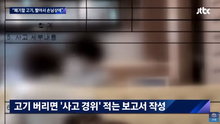 고기를 버리면 경위서를 적게 되어 있으니, 상한 고기도 썼다는 건가요.