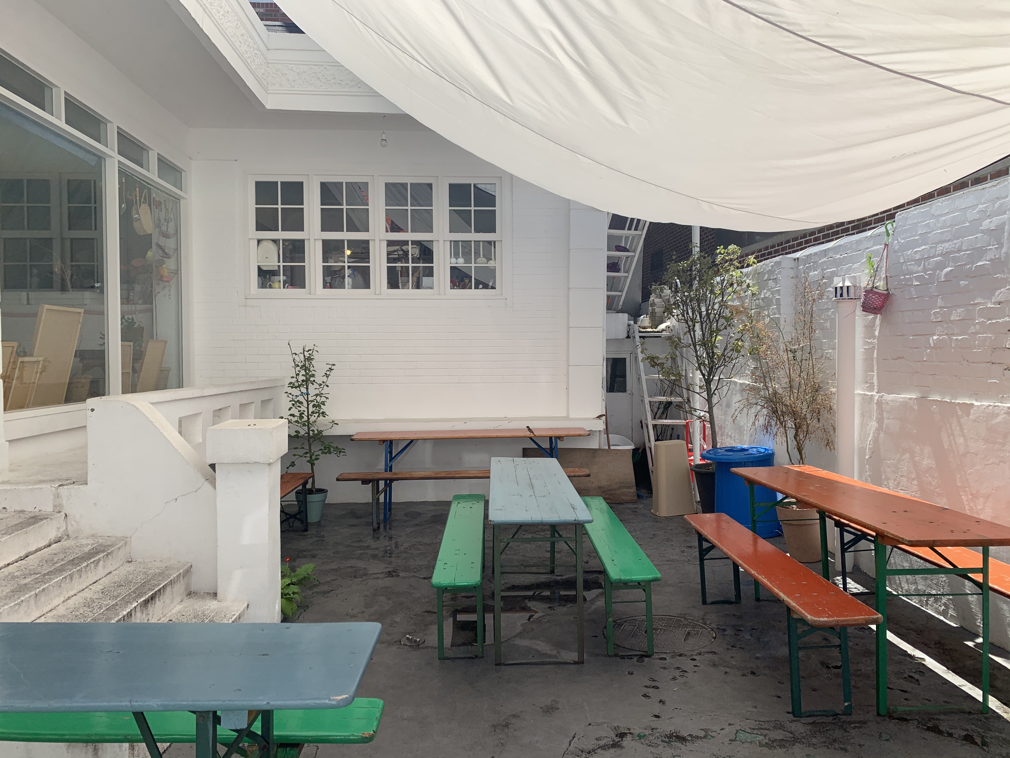 대문을 없애 버리고 그 자리에 야외 테이블을 배치해뒀습니다.