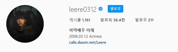 성이 '이씨' 이고 이름이 '레' 인데, 예명이 아니라 본명입니다. '이레'는 히브리어에서 모든것이 준비된 사람이라는 뜻을 가졌다고 합니다. 연기력이 이미 준비가 되어 있던 배우였다는 뜻인가 봅니다.