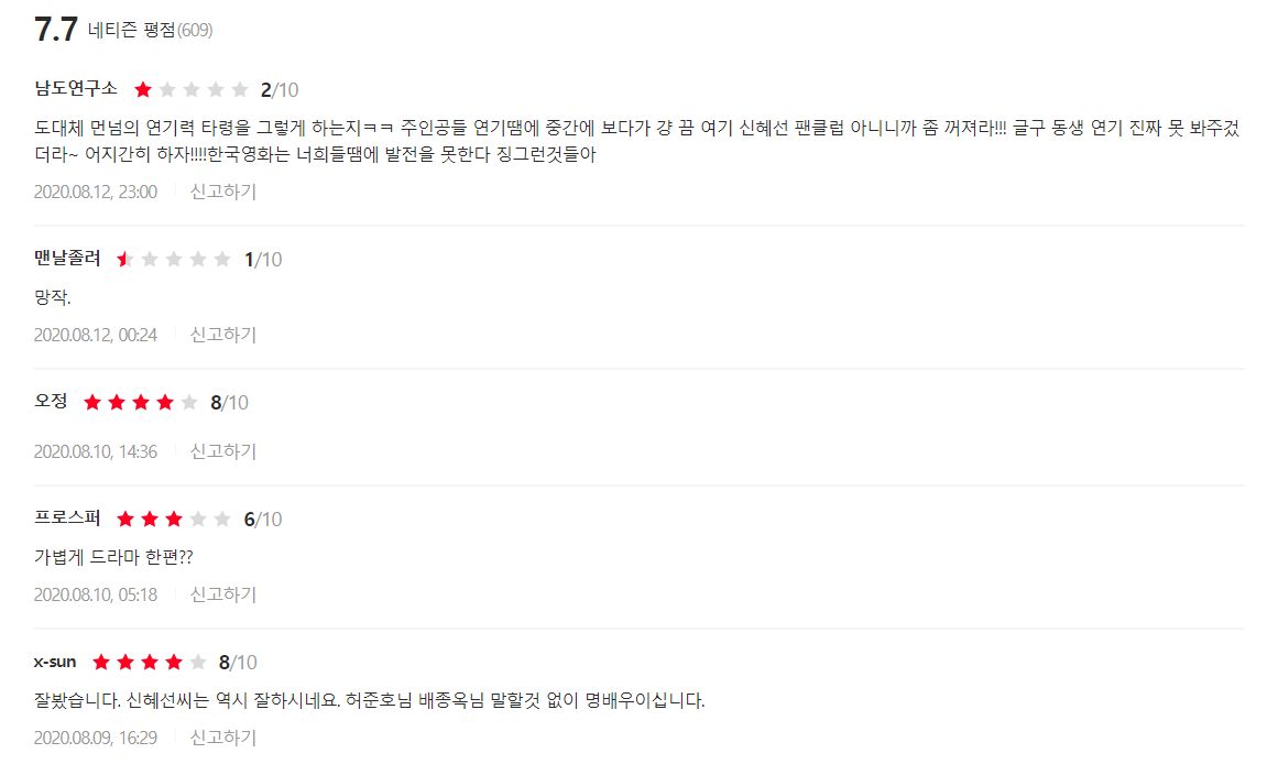 대체적으로 신혜선의 연기에 대해서는 불만이 없어 보이나, 웰메이드 드라마 한편 정도라고 말하는 분도 있습니다.