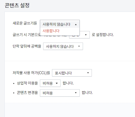 '새로운 글쓰기를 사용하지 않습니다'라고 선택을 하면 구버전 글쓰기모드로 시작됩니다.