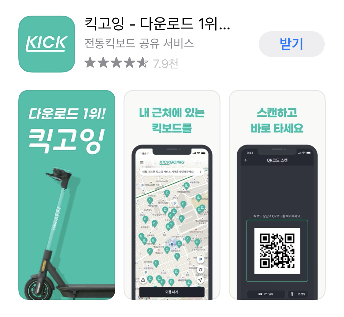 킥고잉 앱을 사용하려 킥보드를 타려면 무조건 Kickgoing 이라고 적혀 있는 킥보드를 타셔야 합니다.