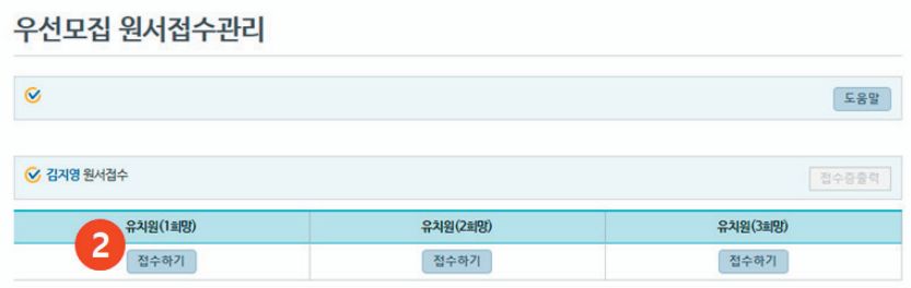 ▼ 지금은 우선모집 기간이니 우선모집으로 유치원 접수가 나옵니다. 유치원 1희망 ~ 3희망을 골라서 접수하기를 실시할 수 있습니다.