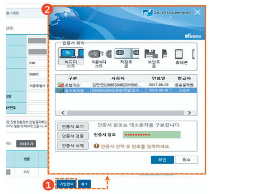 ▼ 그리고 부모님의 인증서를 활용하여 가입완료를 하게 됩니다.