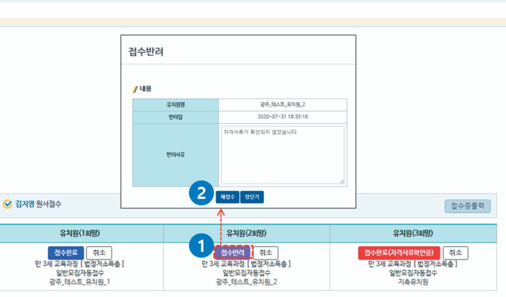 ▼ 접수반려의 경우 이렇게 클릭을 하면 반려된 이유를 상세하게 알 수 있습니다.