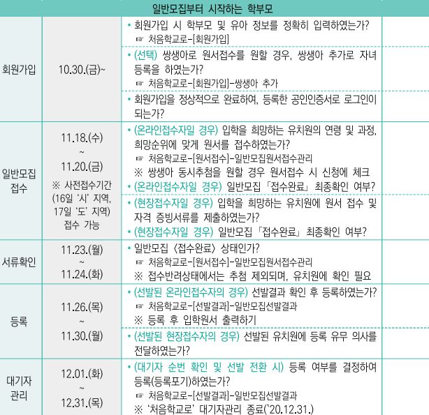아이들의 첫 학교 유치원의 입학을 위해 미리미리 준비하여 불이익을 보는 일이 없도록 하시기 바랍니다.
