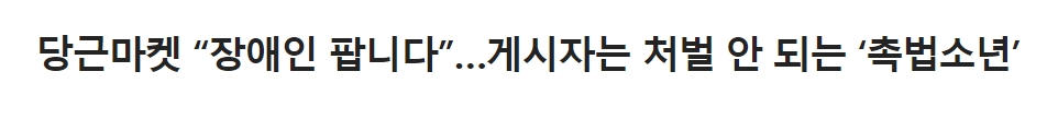 얼마전 우리 모두가 즐겨 사용하는 중고마켓앱, 당근마켓에 아래와 같이 장애인을 판다라는 글이 올라옵니다.