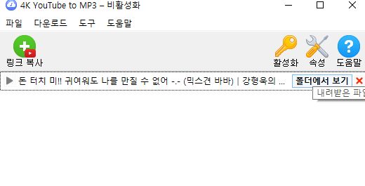이렇게 하여 유튜브의 프리미엄을 기능을 사용하지 않고 MP3로 다운받기를 완료하였습니다.