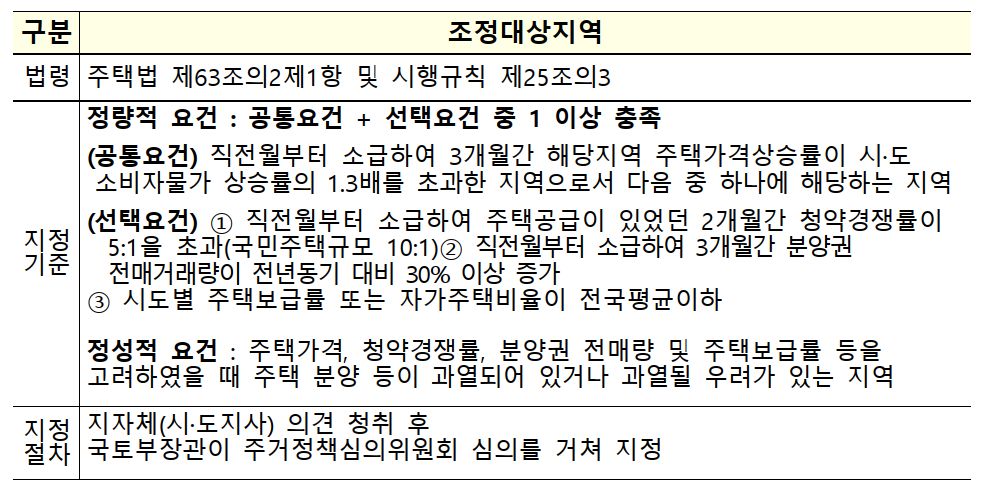 조정대상지역 지정을 통한 시장안정 기조 강화