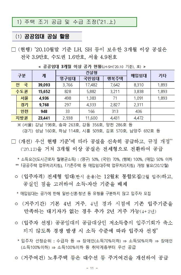 11만 공공임대주택 공급에 대한 내용입니다.