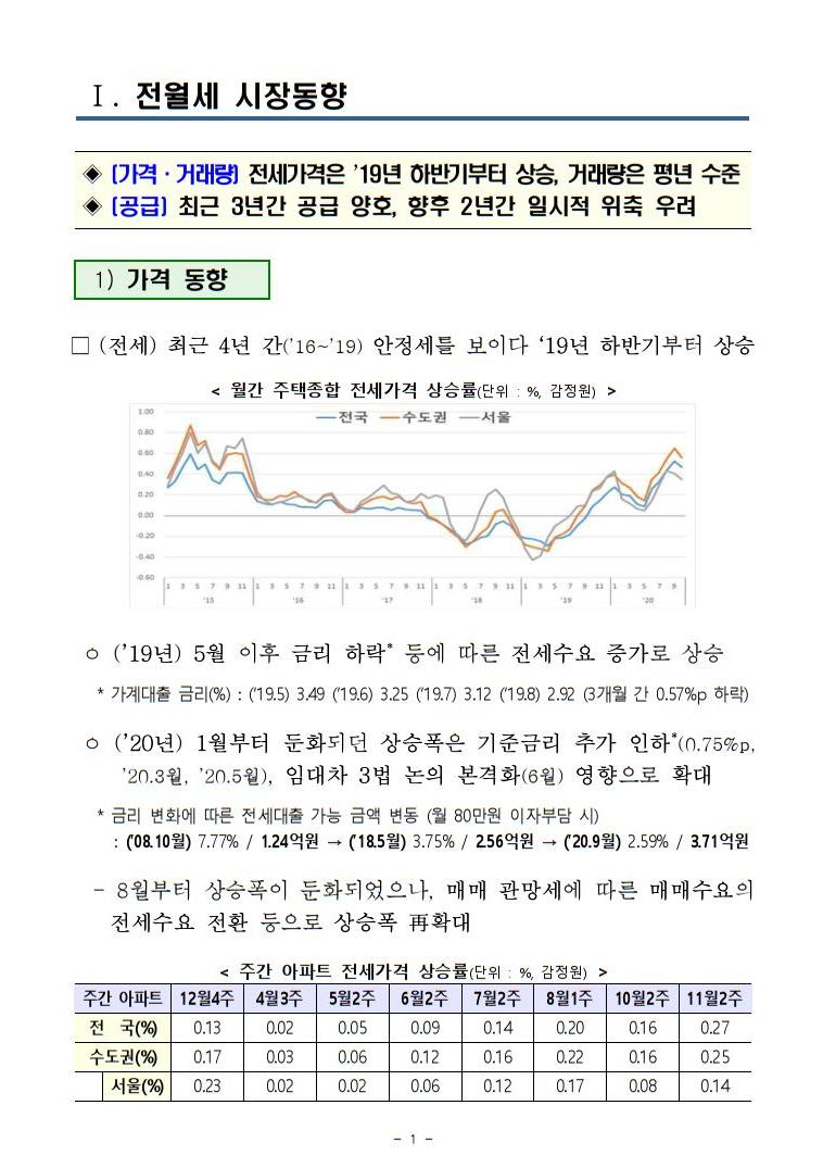 ㅇ 최근 4년간 안정적이었던 전세가격은 지난해 하반기부터 상승하기 시작하였고, 금년 들어 기준금리 추가 인하, 빠른 가구 수 분화 등 영향으로 그 상승폭이 커지는 상황입니다.