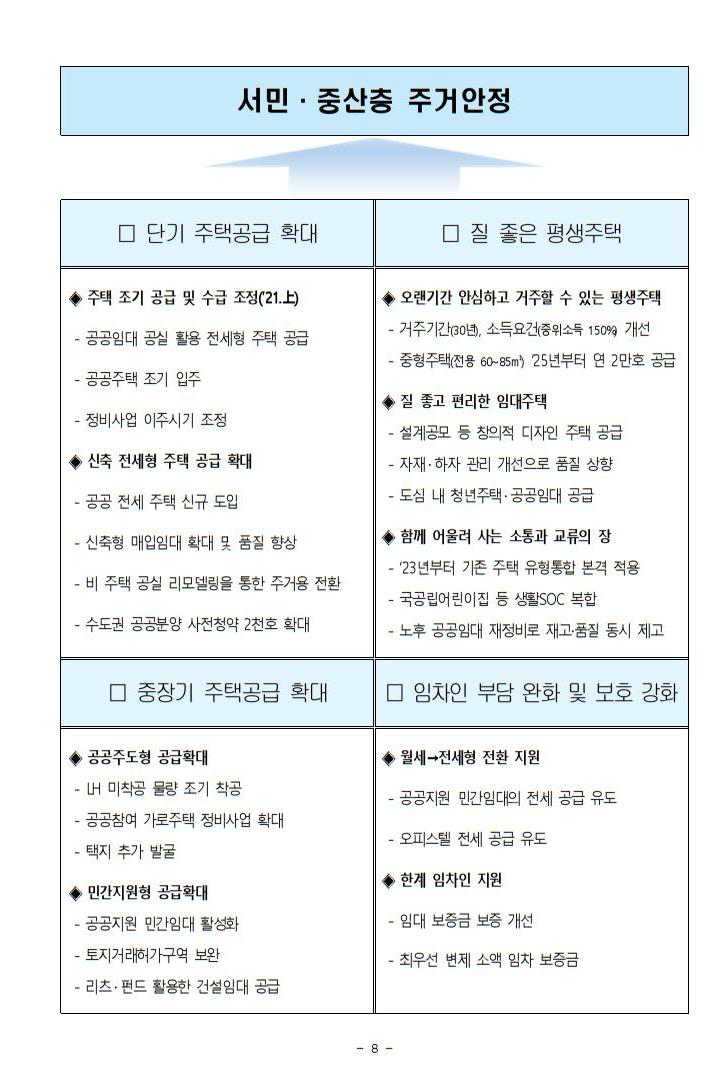 - 신축 위주 단기 + 질 좋은 평생주택 등 중장기 공급 병행