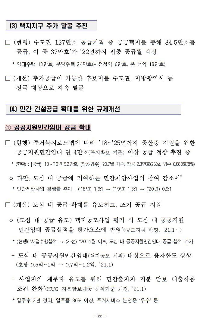 ㅇ 특히, `21년 상반기까지 ‘22년까지의 총 공급 물량의 40% 이상인 전국 4.9만호, 수도권 2.4만호를 집중 공급합니다.
