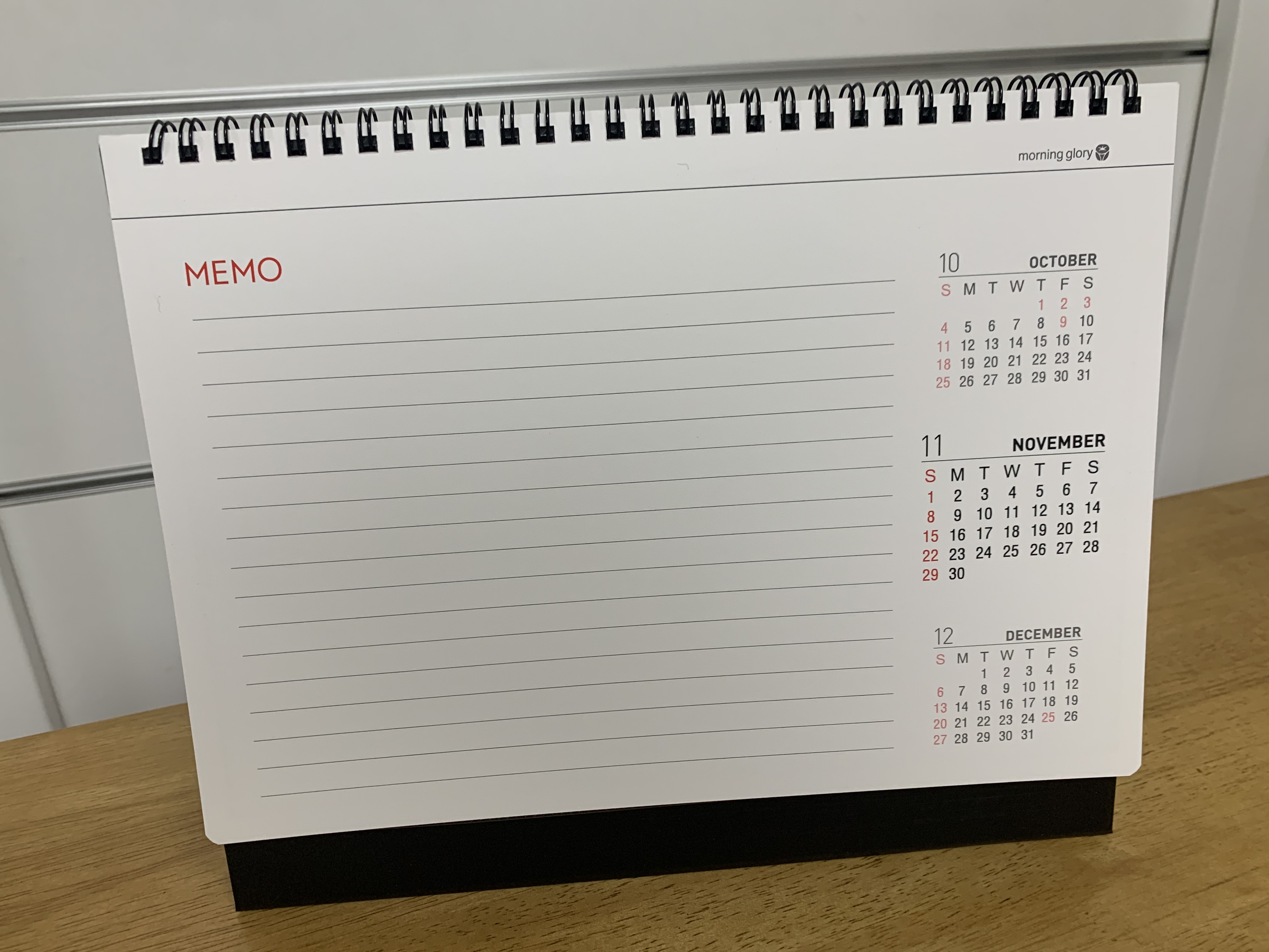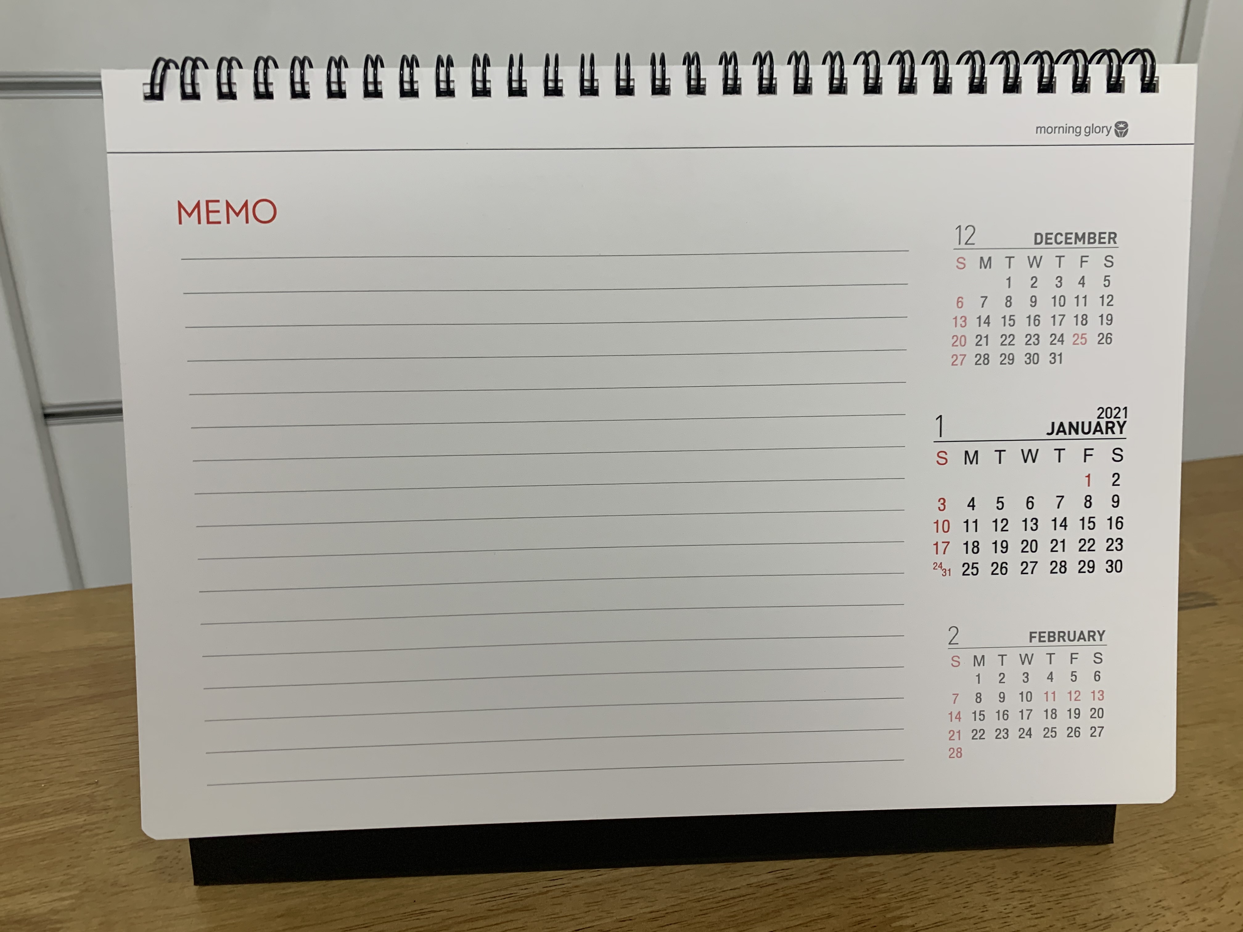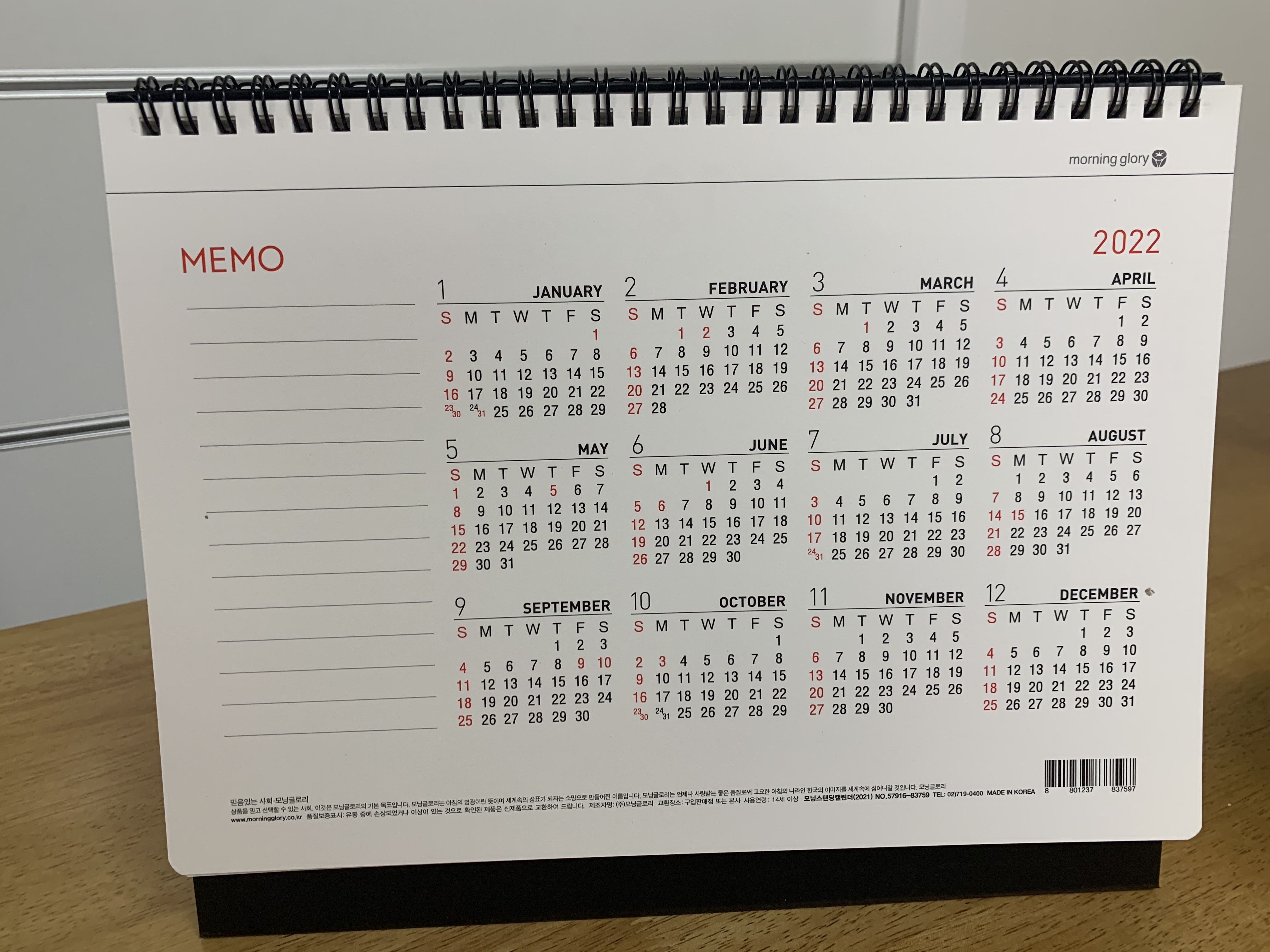 모닝글로리 탁상달력의 장점은, 글을 써 넣을 공간이 확보가 되어 있다는 점입니다.
