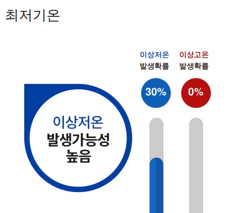 12월 19일~20일에는 다시 영하 10도까지 떨어지는 추위가 찾아올 것으로 예상되며, 12월 셋째주에는 추위는 다시 풀어지고 평년 기온을 되찾을 것으로 보입니다.