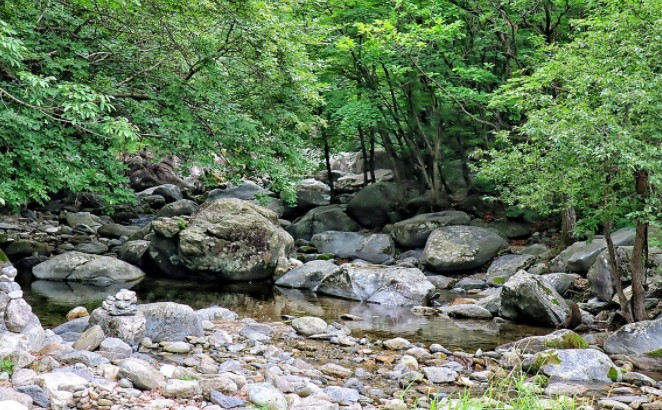 기암괴석 사이로 흐르는 계곡물이 바닥이 보일 정도로 맑아서,
