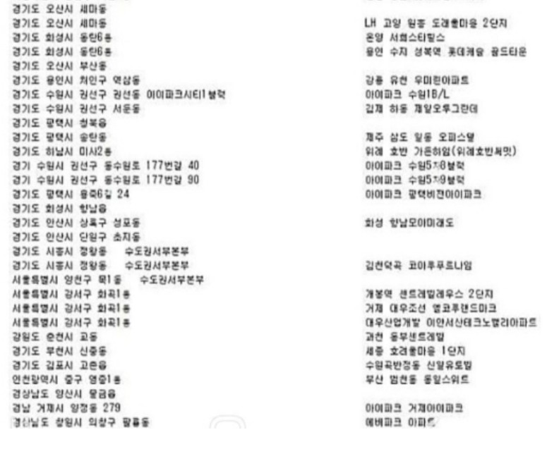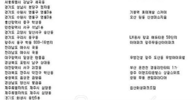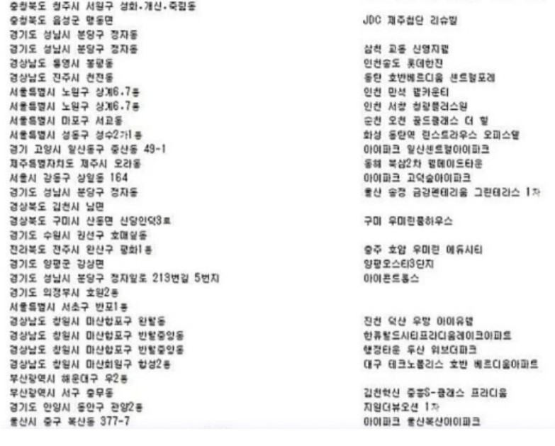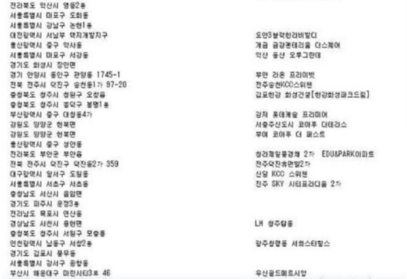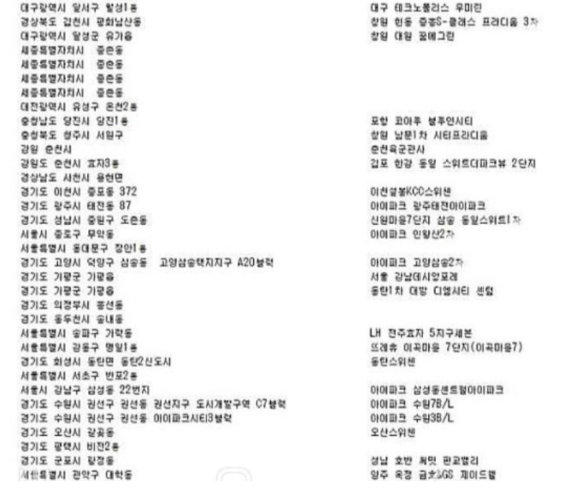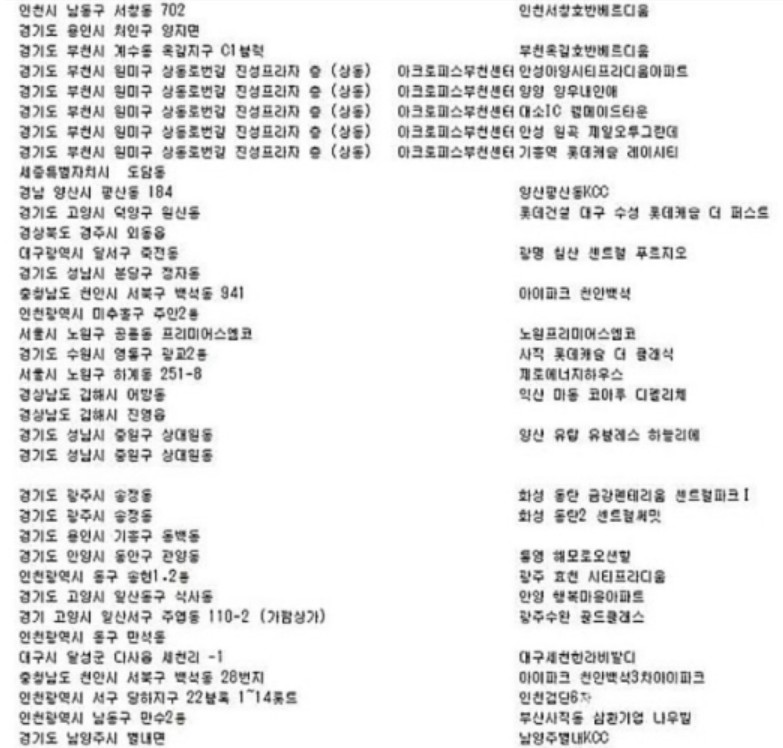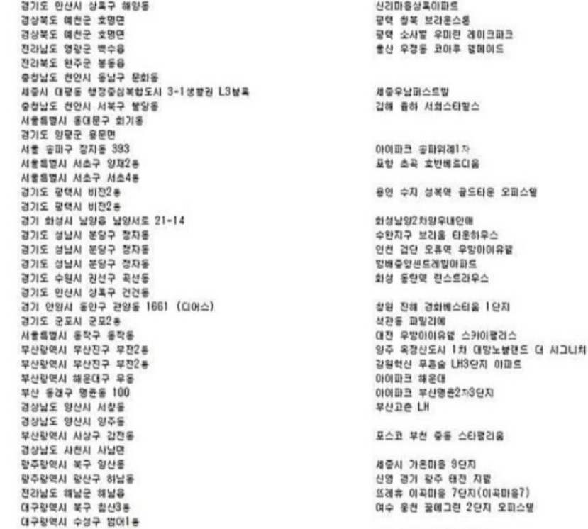 그래서, 이번 피해를 당한 아파트들이 대부분 대규모 단지에 소속되어 있는 신축 아파트 명단이 많이 올라와 있습니다.