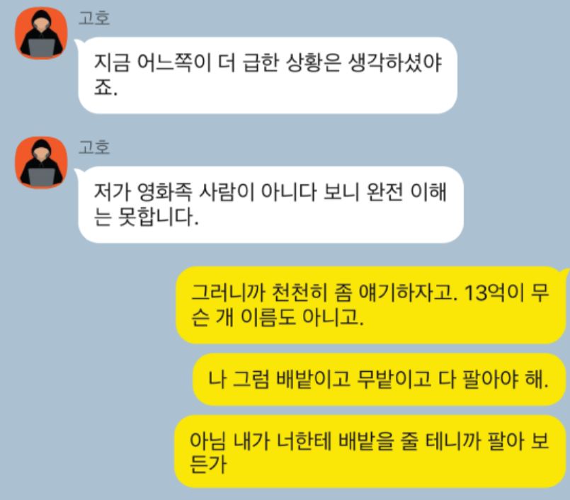 ▶ 해커가 하정우에게 처음 연락을 시도하였으나 하정우가 초반에는 답을 하지 않음
