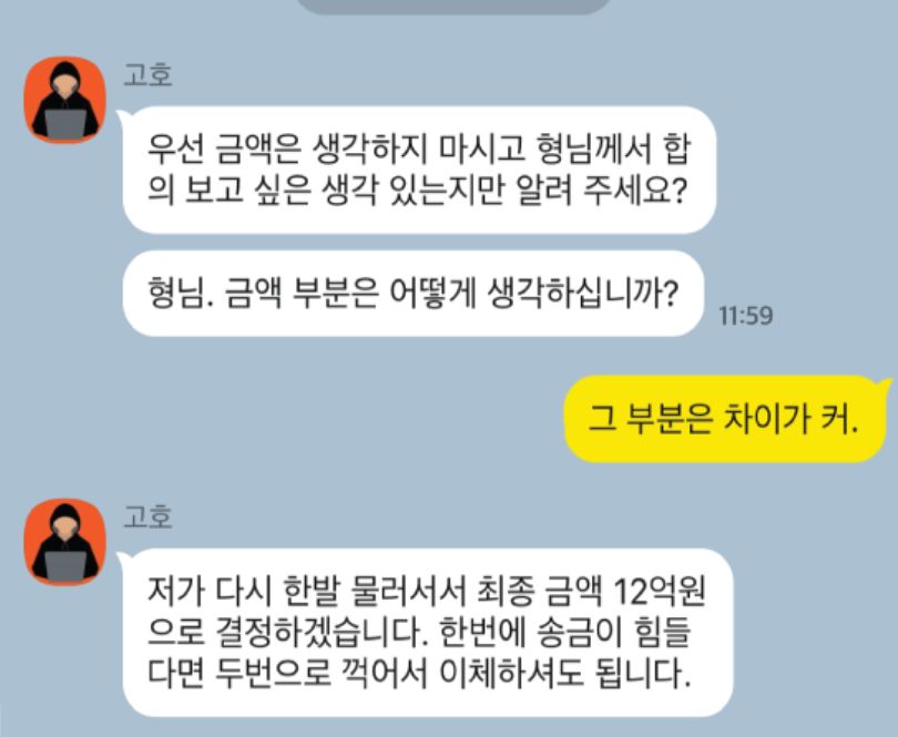 이 사건은 지난해 12월 부터 시작해서 보름 정도 진행된 대화로 보면 됩니다.